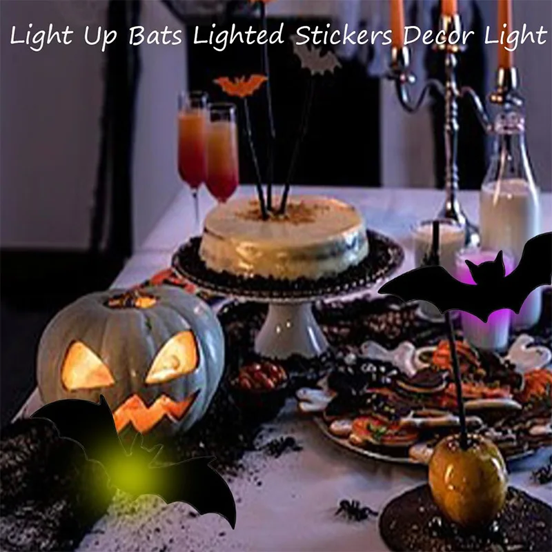 LED Bat Wall Decor 3D Black Bat Stickers Glowing Purple Lights Spooky Party Indoor Wall Decoration for Home Decoration