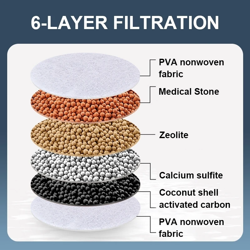 2. Function: water purification filter with build in 6 layers of filtration, filter inputs, safe water, save water, removable and washable